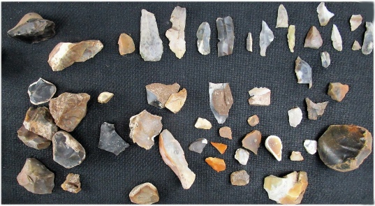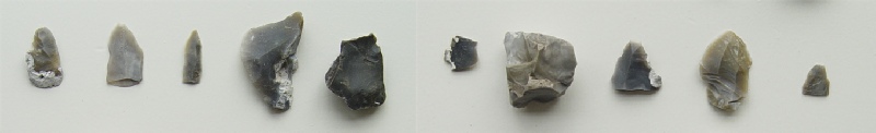 Enkele van de vuursteenafslagen die gevonden zijn bij archeologisch bodemonderzoek te Koewacht