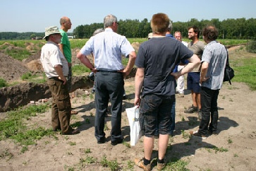 Belangstellenden worden samen met wethouder Jaap Bos voorgelicht over de gang van zaken bij de proefsleuven