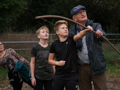 Het derde deel van het project was een buitenactiviteit. Net als de echte archeologen tijdens het onderzoek aan de Emmabaan moesten de kinderen veldlopen, grond zeven en boringen verrichten. Ook mochten ze eens proberen hoe het is om met pijl en boog te schieten.