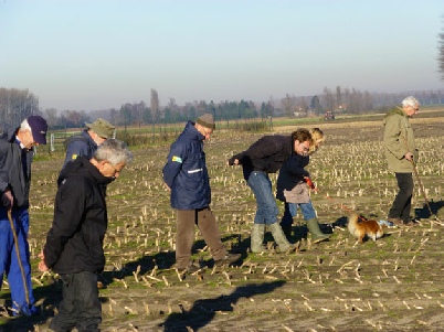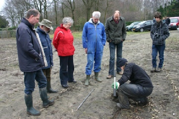 12 februari 2011. Werkgroep Archeologie Hulst vol belangstelling bij de proefboring van een medewerkster van de Universiteit van Gent te Koewacht.