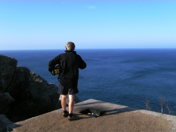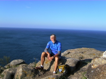 Na 14 km. belanden we in het havenstadje Fisterra, drie kilometer van de Kaap vandaan. We kijken wat rond en vertrekken dan naar ons laatste doel: Kaap Finisterra; het einde van de wereld. Daar staan we onder de vuurtoren en kijken richting Amerika over de Atlantische Oceaan. Twintig jaar geleden zijn we hier met het zeilschip "De Eendracht" 's nachts voorbij gevaren. We hebben toen vanaf het water deze vuurtoren gezien. Het is een heel speciaal moment voor ons. Na een tijdje pakken we onze fiets en gaan terug. We kiezen voor een alternatieve route langs de Atlantische Oceaan zuidwaarts. Het is magnifiek om bijna de hele dag langs het water en de vele haventjes te rijden. Na 100 km. stoppen we om te slapen.