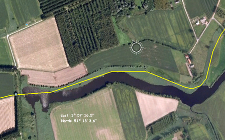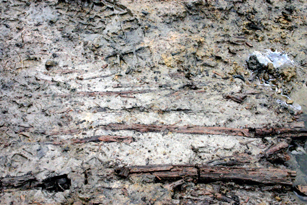 De gegraven nieuwe zijarm van het Perenboomsgat. Op de bodem hiervan bevindt zich de bovengenoemde palenbrug. Een betere vorm van conservering kan men zich niet wensen.