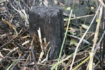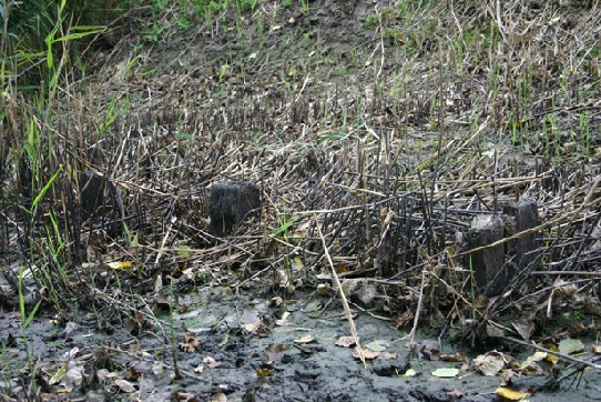 De restanten van de palen uit 1640 laat men keurig op hun plaats zitten. Gelukkig maar.